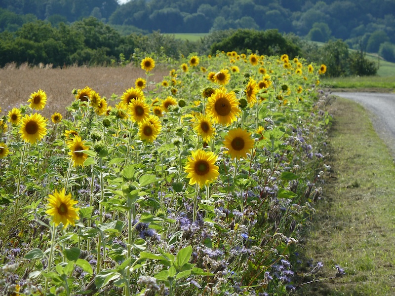 Ein Merkmal des umweltgerechten Anbaus ist der Natur und Artenschutz durch Berücksichtigung und Schaffung von wertvollen Lebensräumen. Dieser Ackerrandstreifen ist ein idealer Lebensraum und eine Nahrungsquelle für viele Nützlinge wie Laufkäfer, Bienen Marienkäfer, Schwebfliegen, Hummeln und Schmetterlingen. Als Gegenleistung besorgen die hier lebenden Insekten und Kleintiere die natürliche Regulierung von Schädlingen in unserem Hohenloher Höfe Getreidefeld.